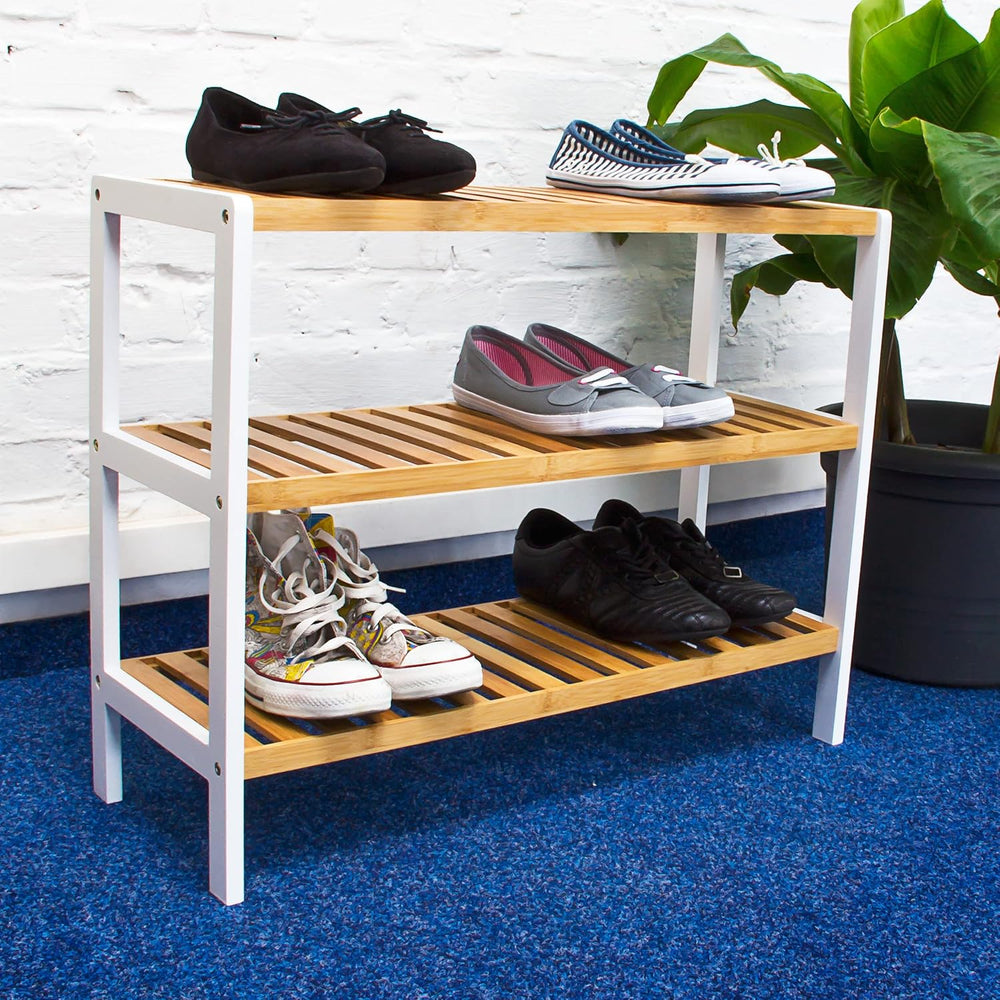 Relaxdays Schuhregal aus Bambus HxBxT: ca. 54,5 x 70 x 24,5 cm Schuhschrank mit 3 Ablagen Schuhablag