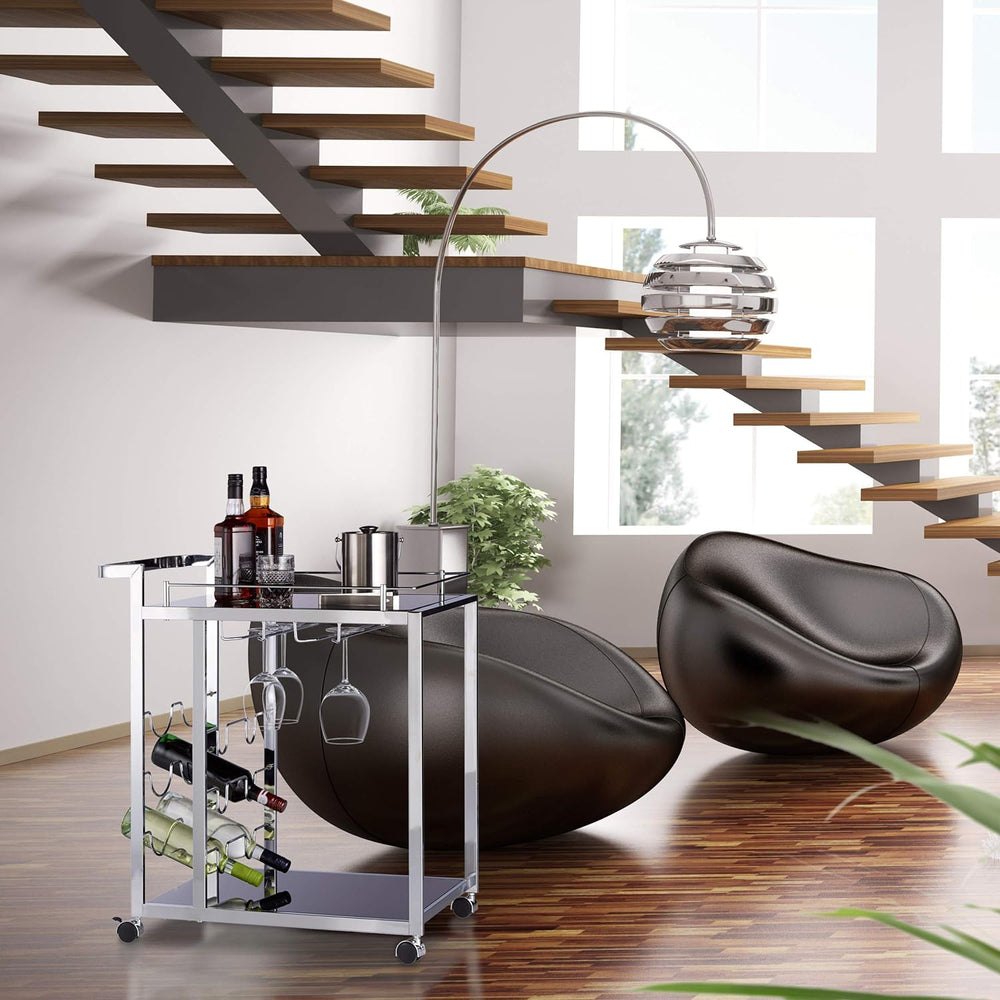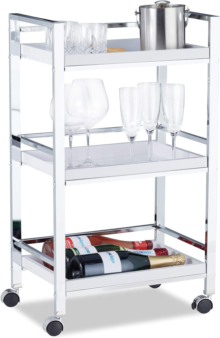 Relaxdays Servierwagen rund, Barwagen mit 2 Etagen, Stahl, verspiegelte Ablagen, Teewagen mit Rollen