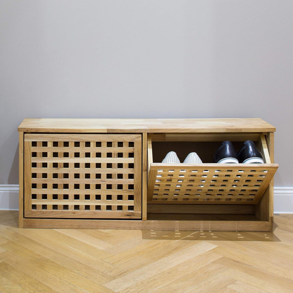 Relaxdays Schuhkipper Walnuss Schuhklapper aus massivem Holz HBT: ca. 38 x 94 x 20 cm Schuhkommode S