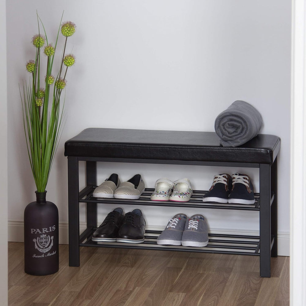 Relaxdays Schuhbank, offen, für 6-8 Paar Schuhe, Schuhregal zum Sitzen, Polsterung aus Kunstleder, H