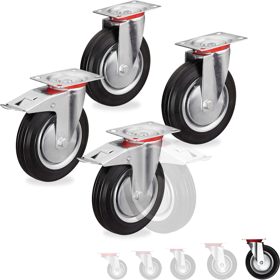 Relaxdays Schwerlastrollen 4er Set, drehbar, Kugellager, 2 Rollen mit Bremse, Tragkraft bis 800kg, R