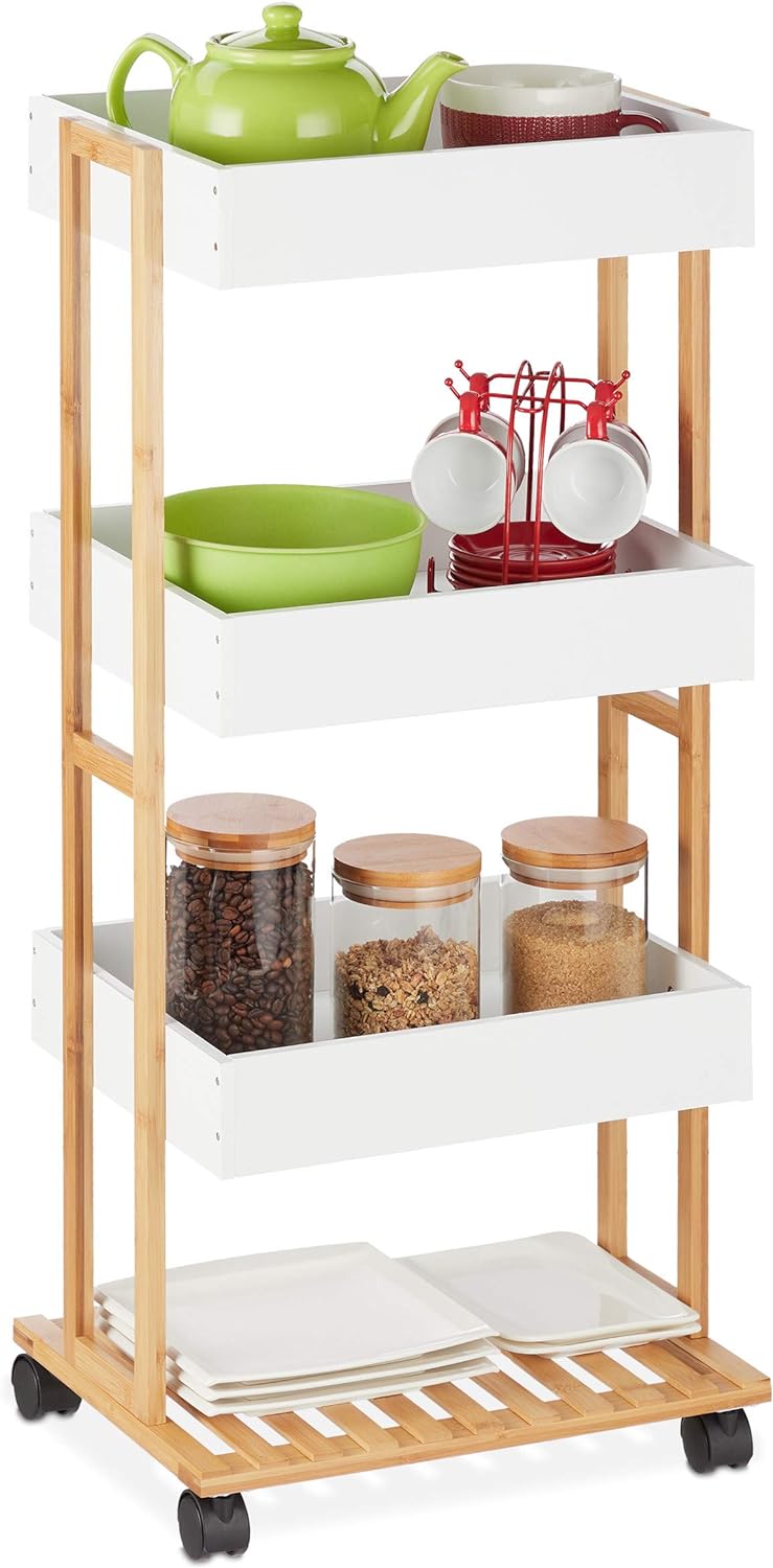 Relaxdays Servierwagen, Bambus & MDF, Küchenwagen mit 4 Etagen, Rollwagen, Küche & Bad, HBT: 88 x 40