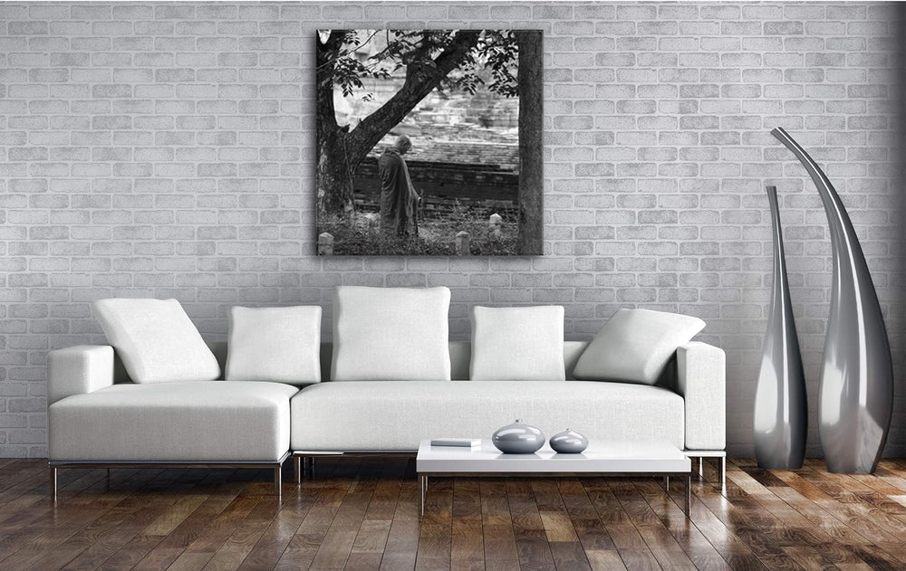deyoli Friedlicher Mönch Format: 70x70 Effekt: Schwarz&Weiss als Leinwandbild, Motiv auf Echtholzrah