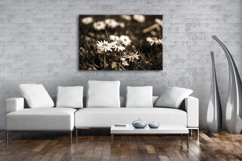 deyoli Gänseblümchen auf schöner Wiese Format: 80x60 Effekt: Sepia als Leinwandbild, Motiv fertig ge