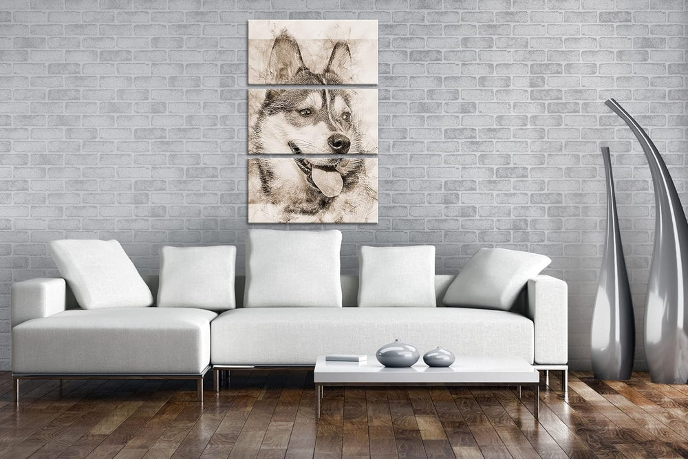 deyoli friedlicher Hund Effekt: Sepia Format: 3Teilig als Leinwandbild, Motiv fertig gerahmt auf Ech