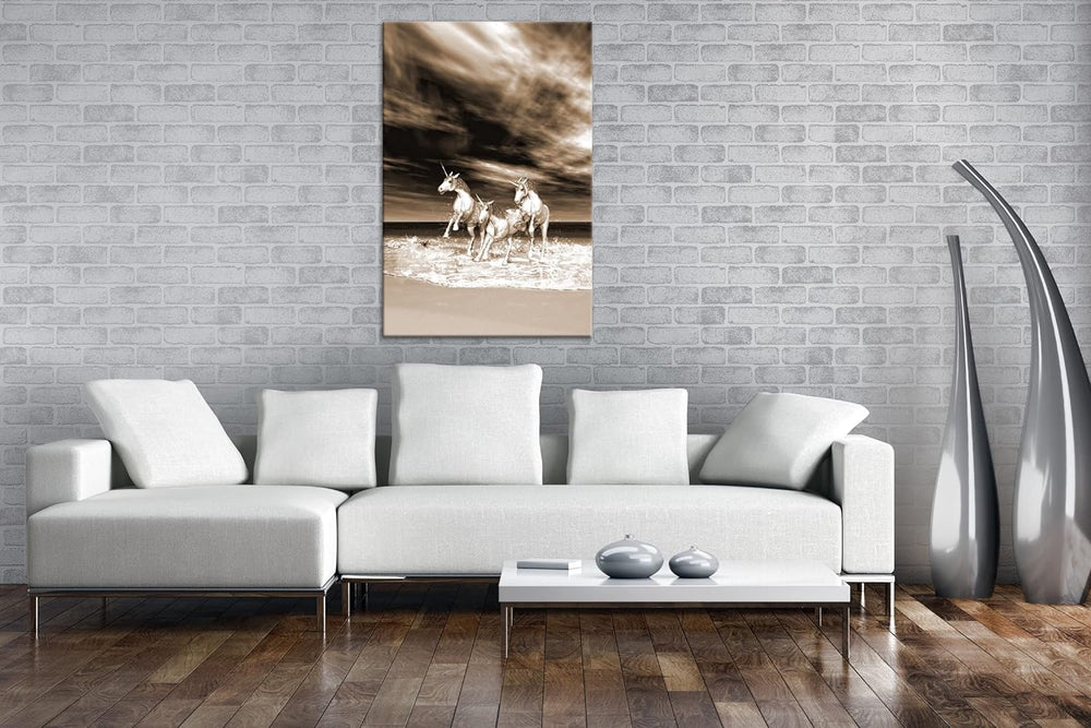 deyoli galoppierende Einhörner am Strand Format: 80x60 Effekt: Sepia als Leinwandbild, Motiv fertig