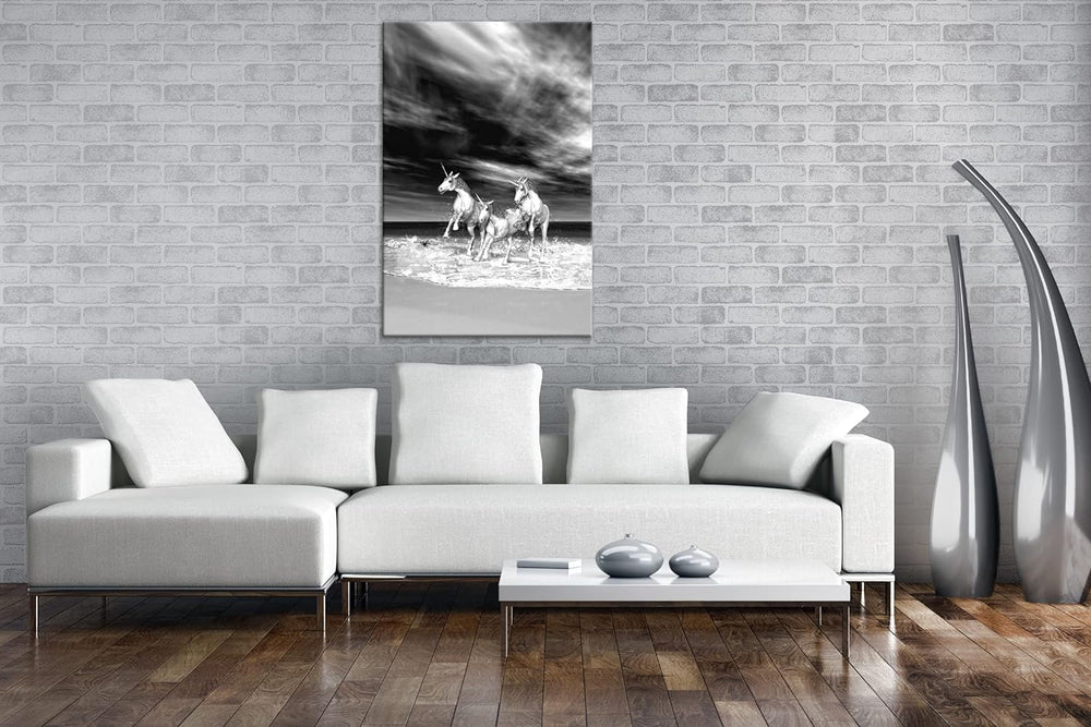 deyoli galoppierende Einhörner am Strand Format: 120x80 Effekt: Schwarz&Weiss als Leinwandbild, Moti