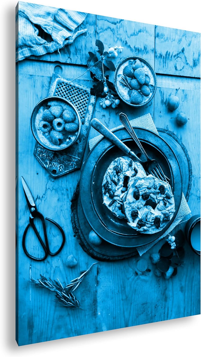 deyoli fruchtiger Kuchen Format: 80x60 Effekt: Monocrome Blau als Leinwand, Motiv fertig gerahmt auf