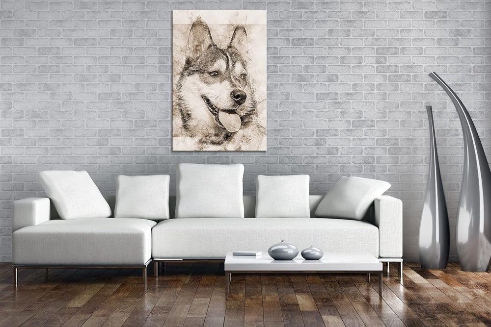 deyoli friedlicher Hund Effekt: Sepia Format: 80x60 als Leinwandbild, Motiv fertig gerahmt auf Echth