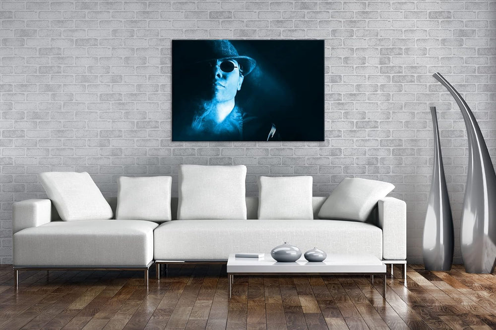 deyoli Gangster mit retro Brille Format: 80x60 Effekt: Monocrome Blau als Leinwand, Motiv fertig ger