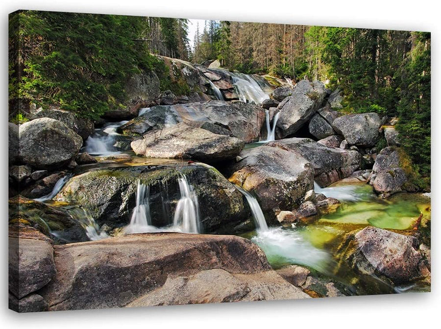Feeby Wandbild Bach Druckbild Leinwandbild Wald Grün 100x70 cm