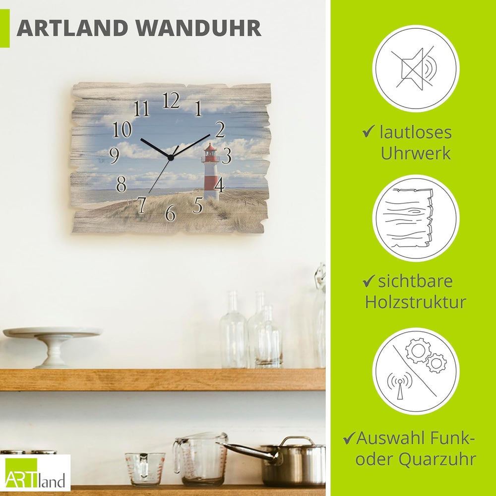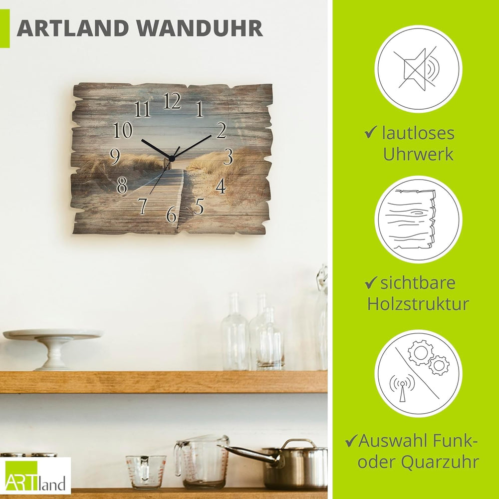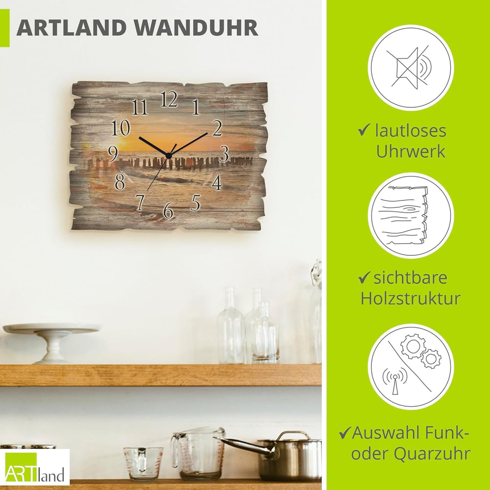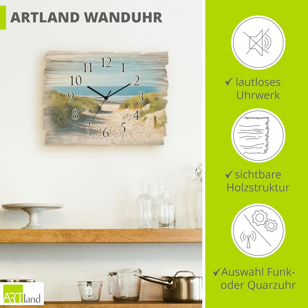 ARTLAND Wanduhr ohne Tickgeräusche aus Holz Quarz Uhr lautlos 40x30 cm Rechteckig Strand Meer Ostsee