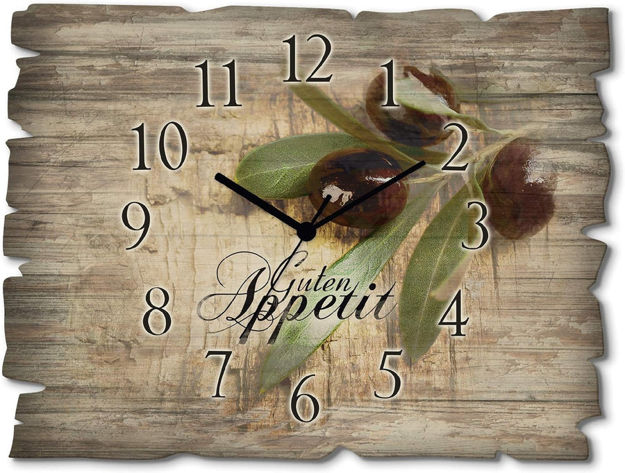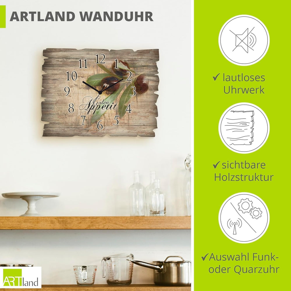 ARTLAND Wanduhr ohne Tickgeräusche aus Holz Quarzuhr 40x30 cm Rechteckig Lautlos Guten Appetit Essen
