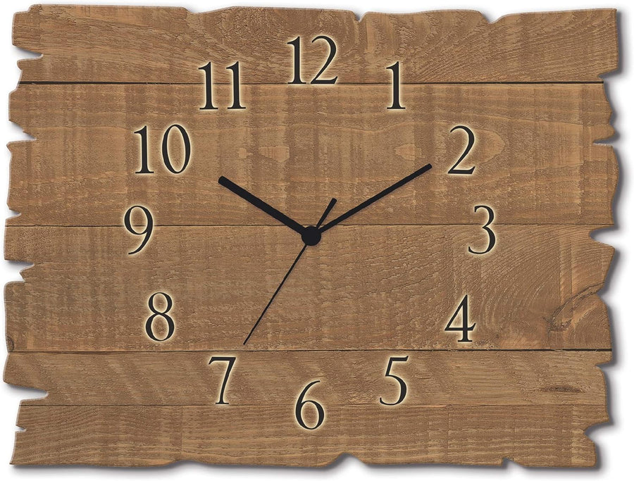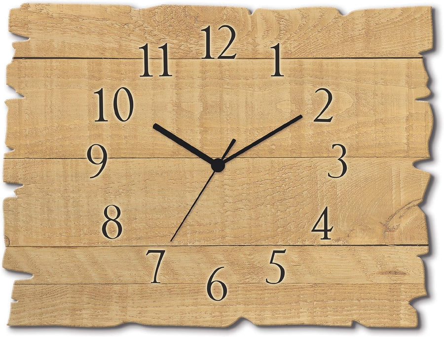 ARTLAND Wanduhr ohne Tickgeräusche aus Holz Quarz Uhr lautlos 40x30 cm Rechteckig Muster Rustikal La