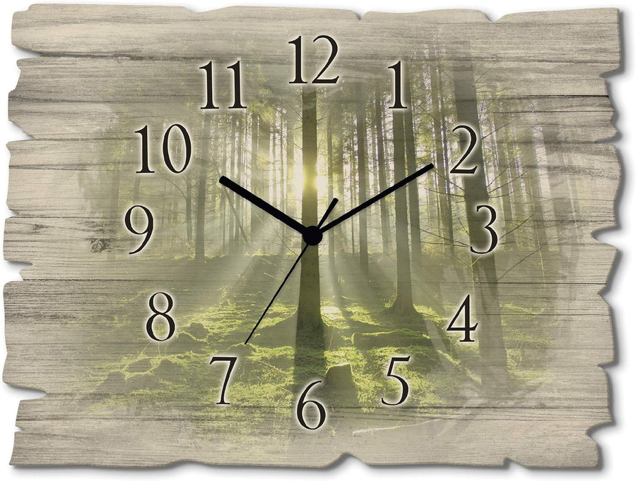 ARTLAND Wanduhr ohne Tickgeräusche aus Holz Quarz Uhr lautlos 40x30 cm Rechteckig Wald Landschaft Na