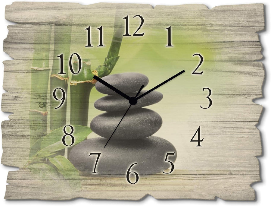 ARTLAND Wanduhr ohne Tickgeräusche aus Holz Quarz Uhr lautlos Rechteckig 40x30 cm Wellness Spa Zen I