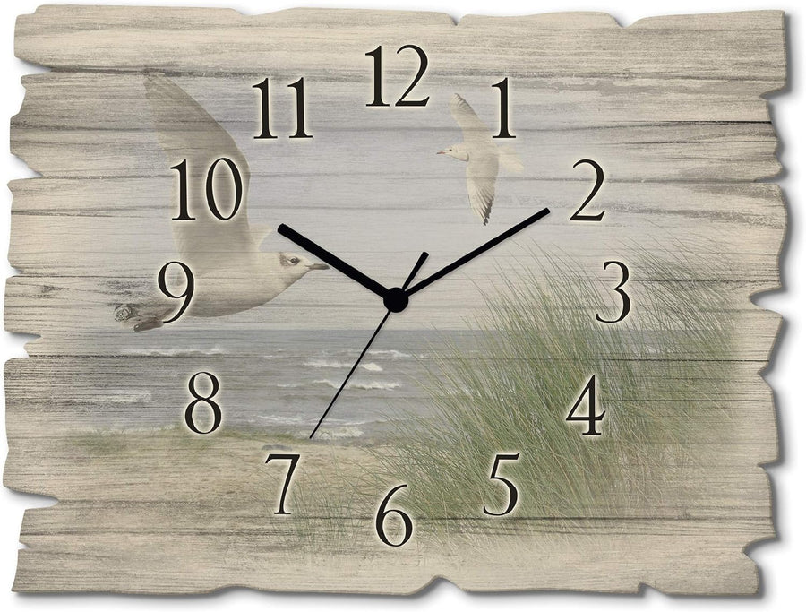 ARTLAND Wanduhr ohne Tickgeräusche aus Holz Quarzuhr 40x30 cm Rechteckig Lautlos Strand Meer Nordsee