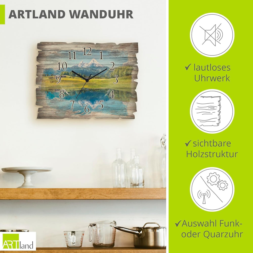ARTLAND Wanduhr ohne Tickgeräusche aus Holz Quarz Uhr lautlos Rechteckig 40x30 cm Landschaften Natur