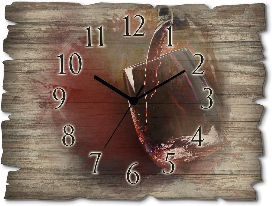 ARTLAND Wanduhr ohne Tickgeräusche aus Holz Funkuhr 40x30 cm Rechteckig Lautlos Wein Rotwein Bildmal