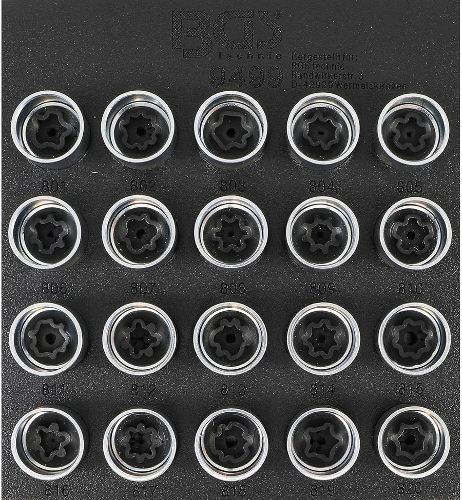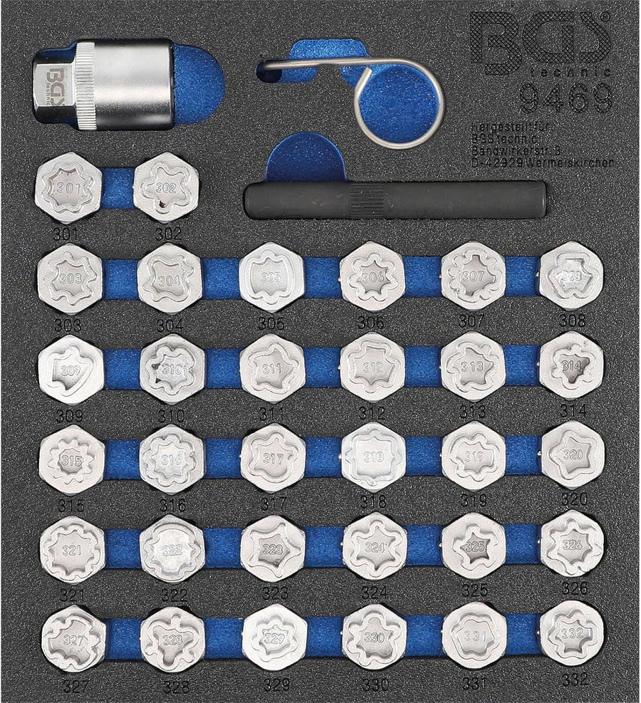 BGS 9499 | Werkstattwageneinlage 1/6: Felgenschloss-Werkzeug-Satz für Audi | 20-tlg., Audi | 20-tlg