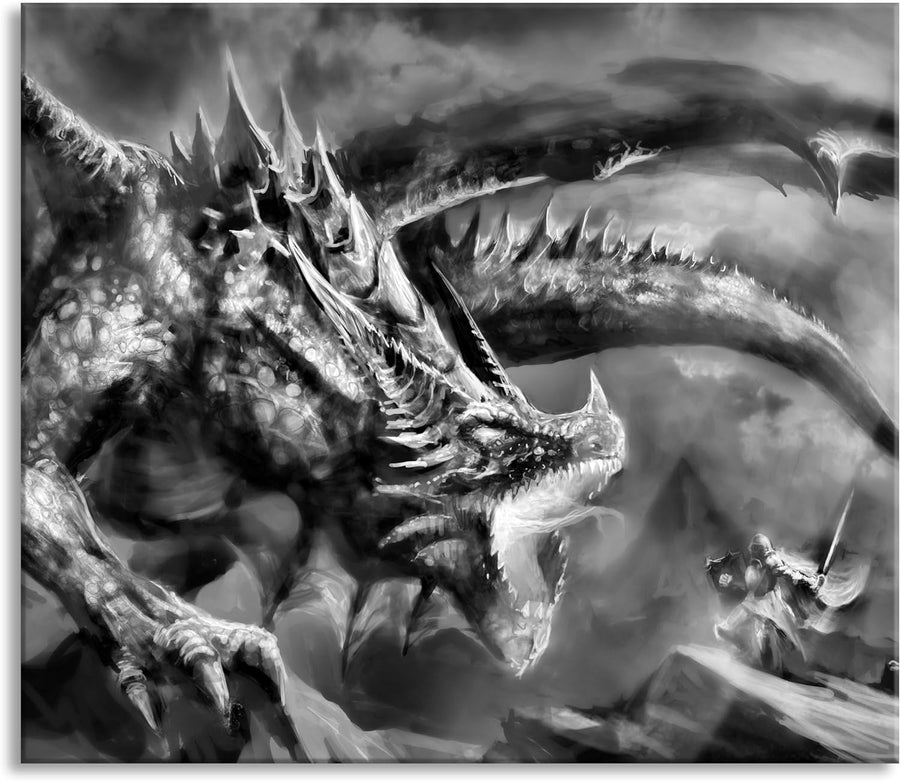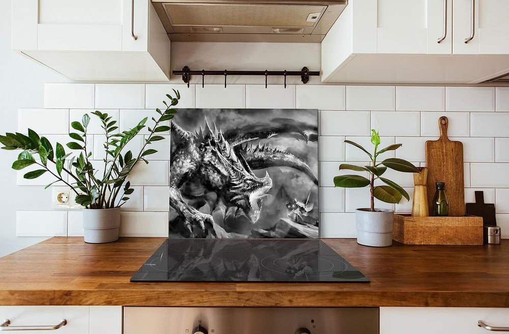 Kampf zwischen Mensch und Drache Herdabdeckplatte & Spritzschutz aus Echtglas | Für Herd-Kochfelder