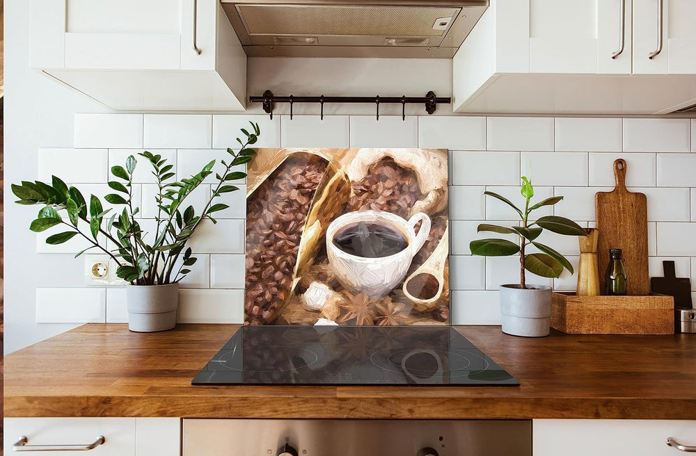 Kaffeebohnen Herdabdeckplatte & Spritzschutz aus Echtglas | Für Herd-Kochfelder | 60x52 cm