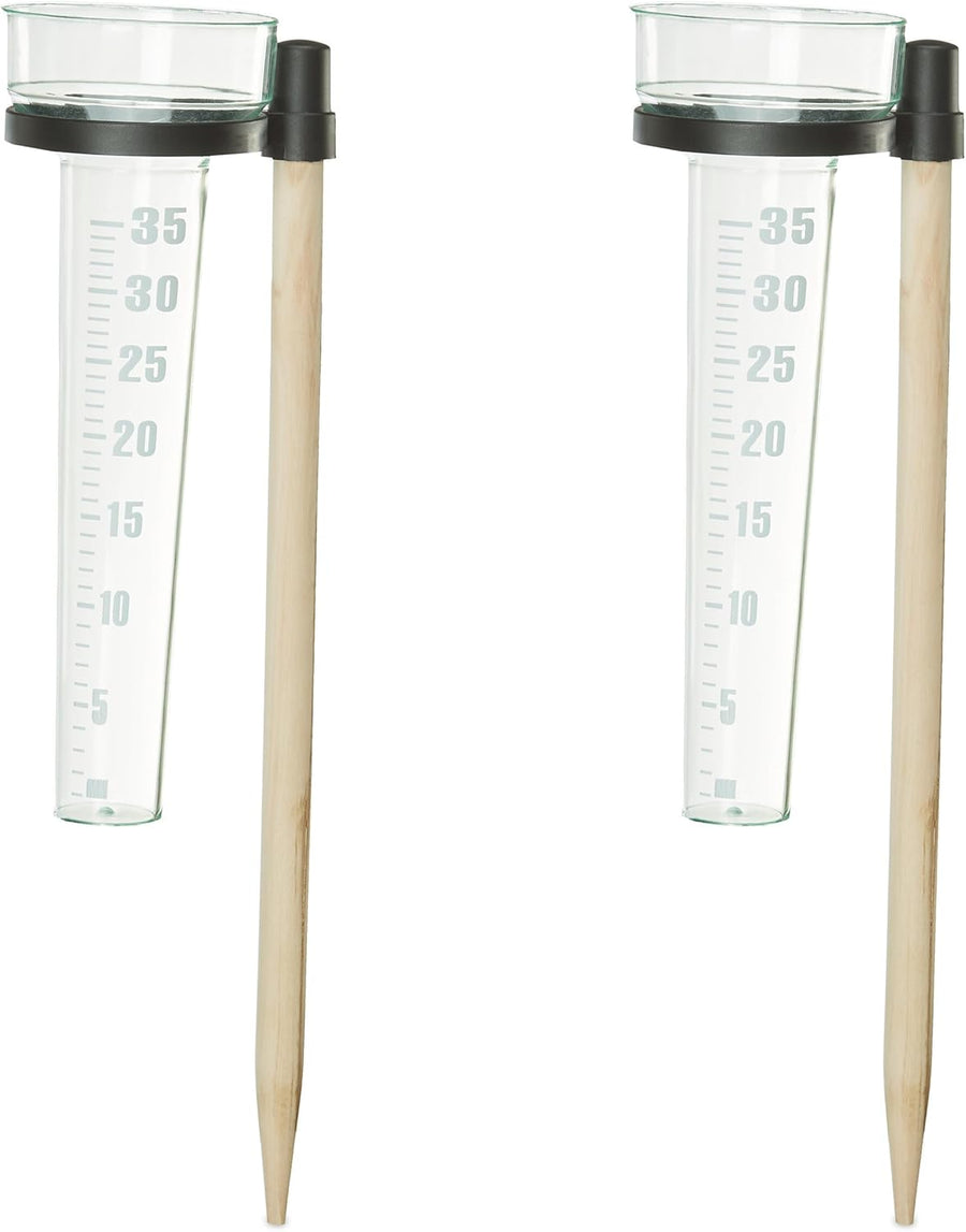 Relaxdays Regenmesser 2er Set, mit Stab, Niederschlagsmesser Garten, Skala 35mm/m², Kunststoff & Hol
