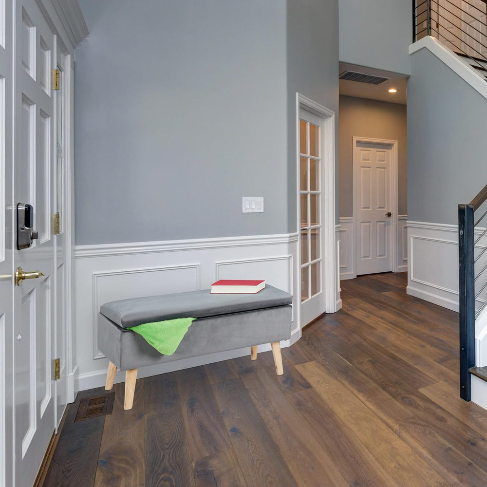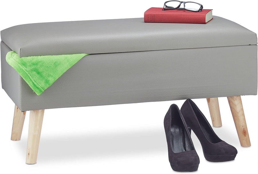 Relaxdays Sitzbank mit Stauraum, gepolsterte Truhenbank, modern, Holzbeine, Stoffbezug, HBT: 39 x 77