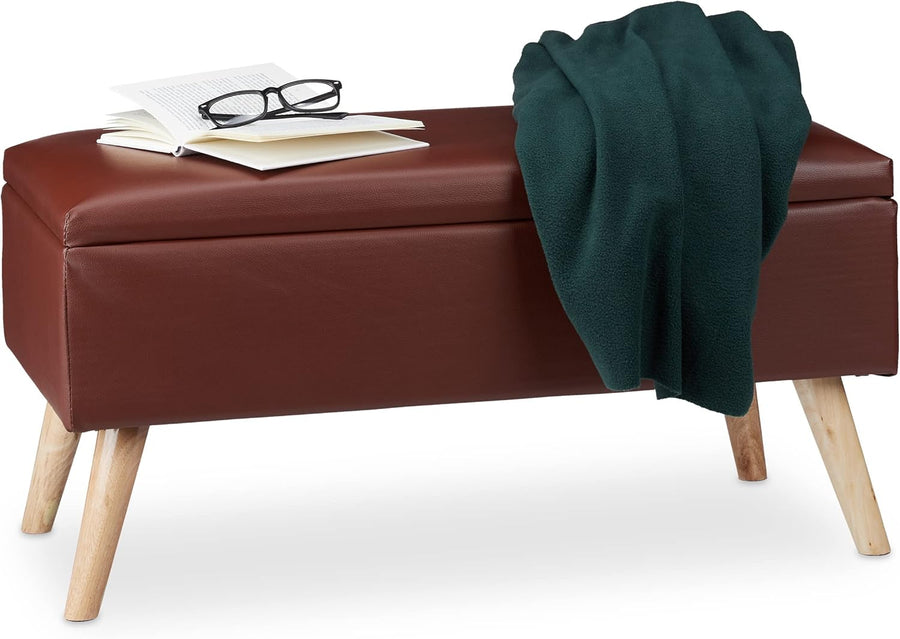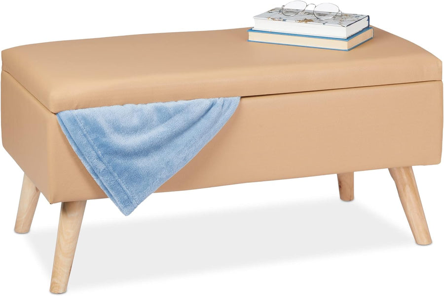 Relaxdays Sitzbank mit Stauraum, 40 L, gepolstert, Holzbeine, Truhenbank Kunstleder, HxBxT: 40 x 80