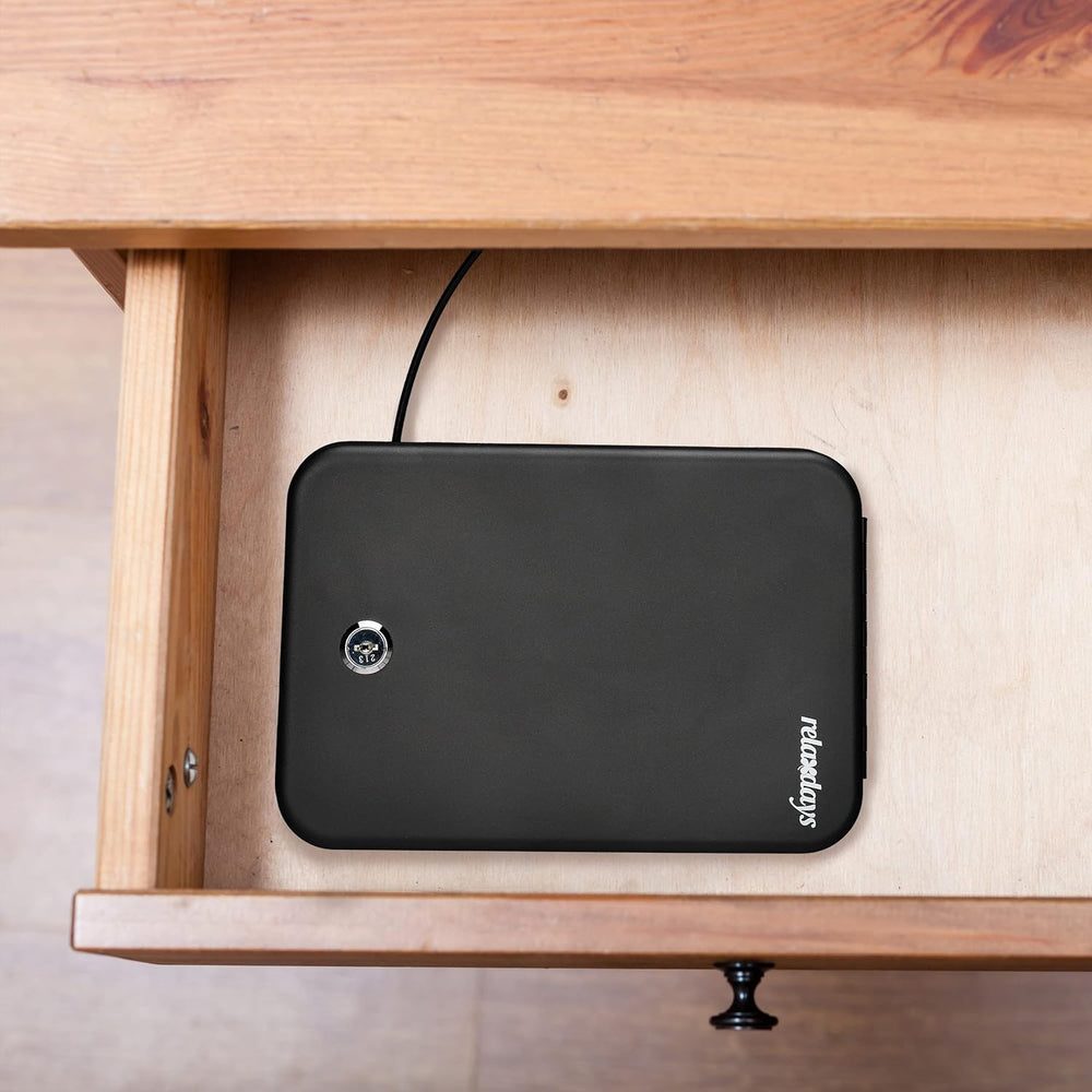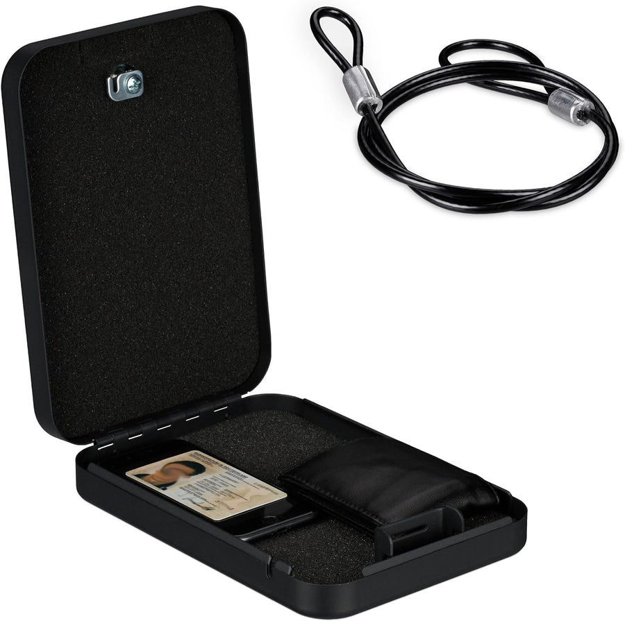 Relaxdays Sicherheitsbox abschliessbar, 2 Schlüssel, tragbar, Sicherungskabel, Autosafe, Stahl, HBT: