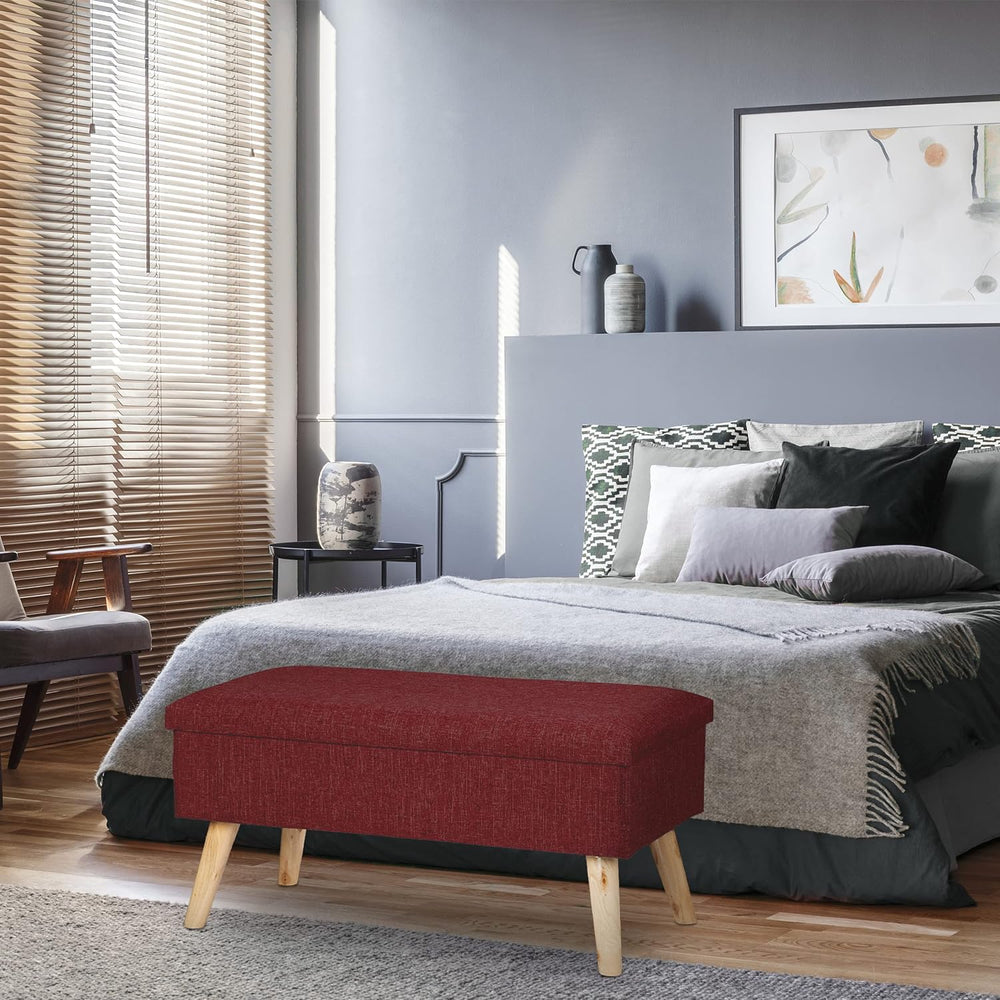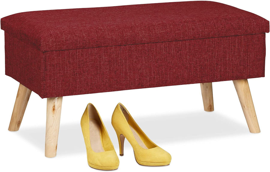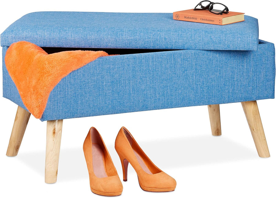 Relaxdays Sitzbank mit Stauraum, gepolstert, Holzbeine, Truhenbank Stoffbezug, HxBxT: 39,5 x 79,5 x