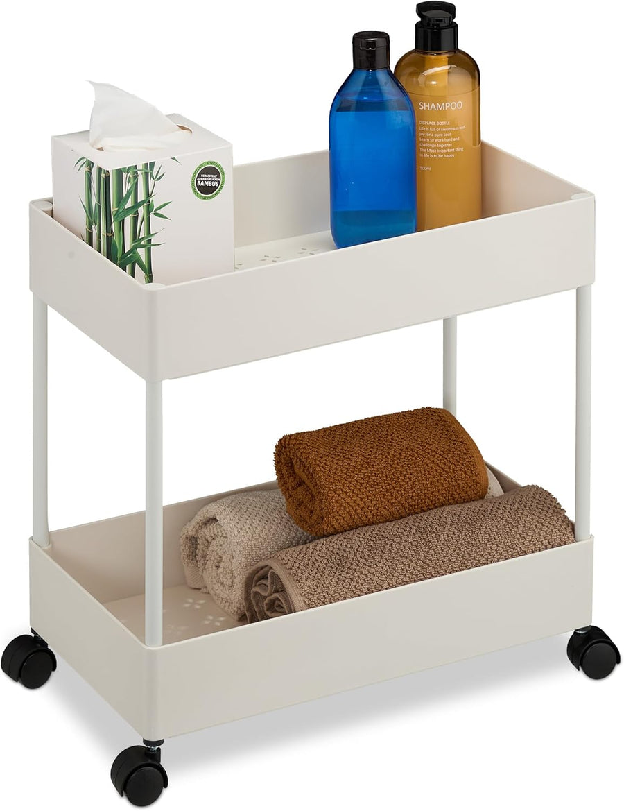 Relaxdays Rollwagen, 2 Etagen, Servierwagen, Küchenwagen, Bad & Büro, Rollregal, HxBxT: 38 x 39,5 x