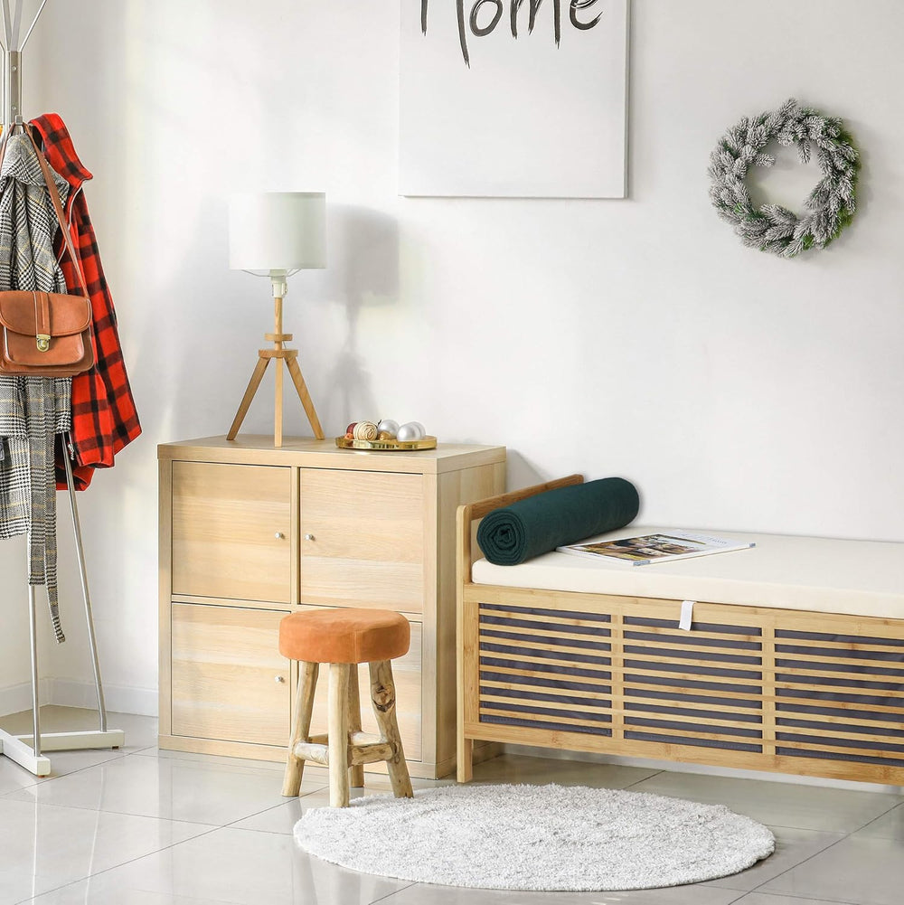 Relaxdays Sitzbank mit Stauraum, Aufbewahrungsbox m. Sitzkissen f. Flur, Bambus Truhe L HxBxT: 50 x