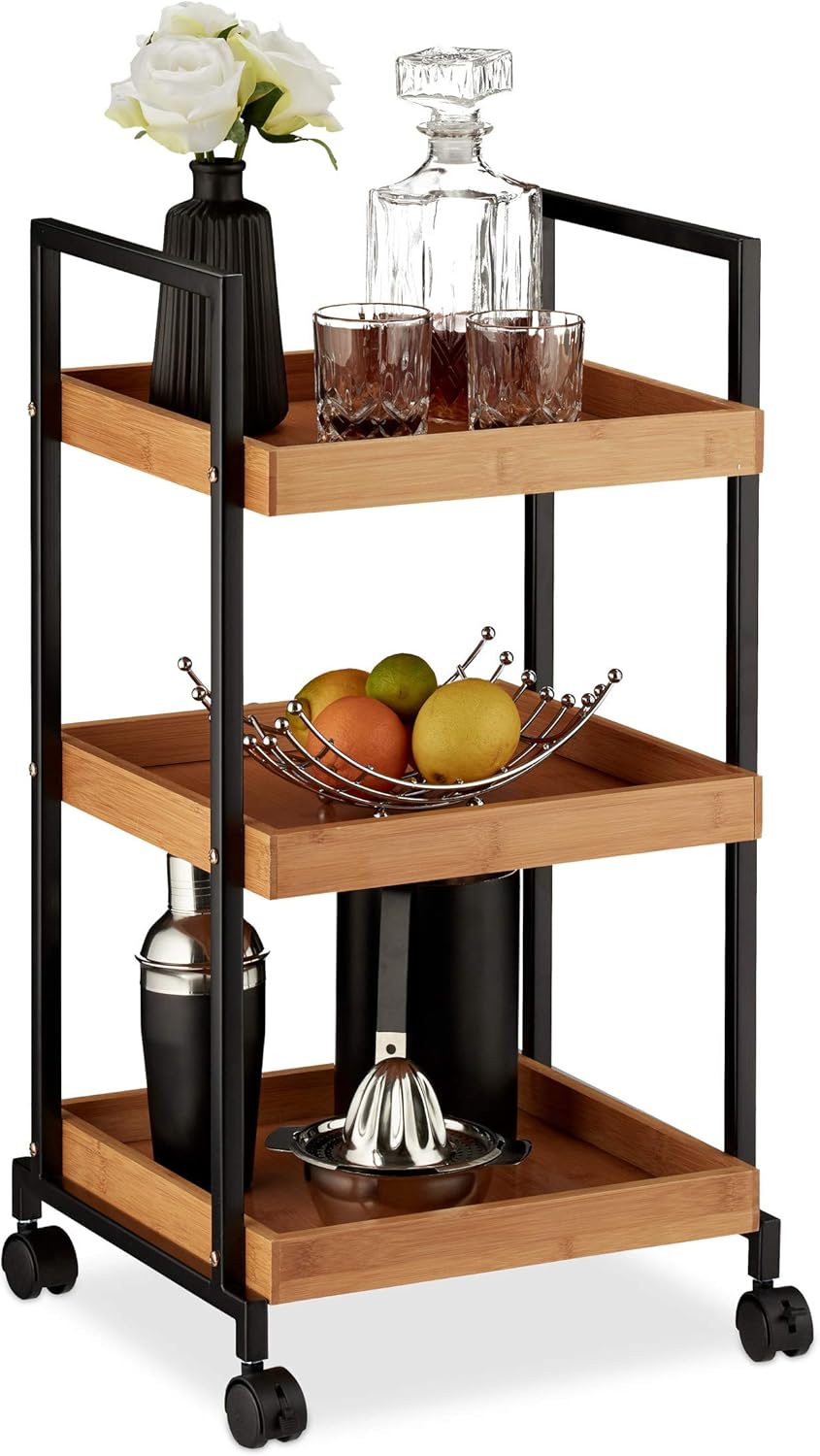 Relaxdays Servierwagen, moderner Küchentrolley, & Eisen, 3 Böden, quadratisch, 4 Rollen, 69,5 x 37 x