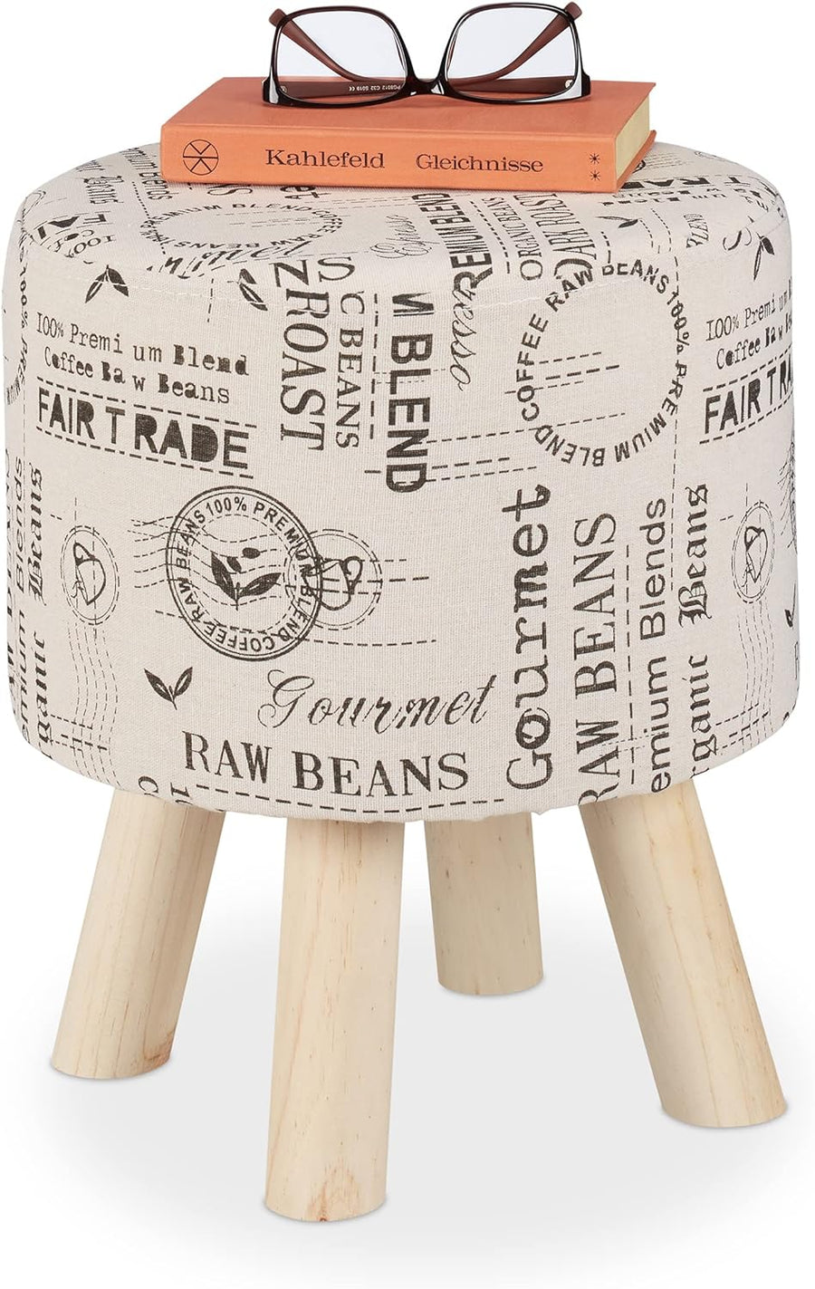 Relaxdays Sitzhocker, Stoffbezug, Holzbeine, gepolstert, runder Hocker, Wohnzimmer, Kaffee-Motiv, Hx