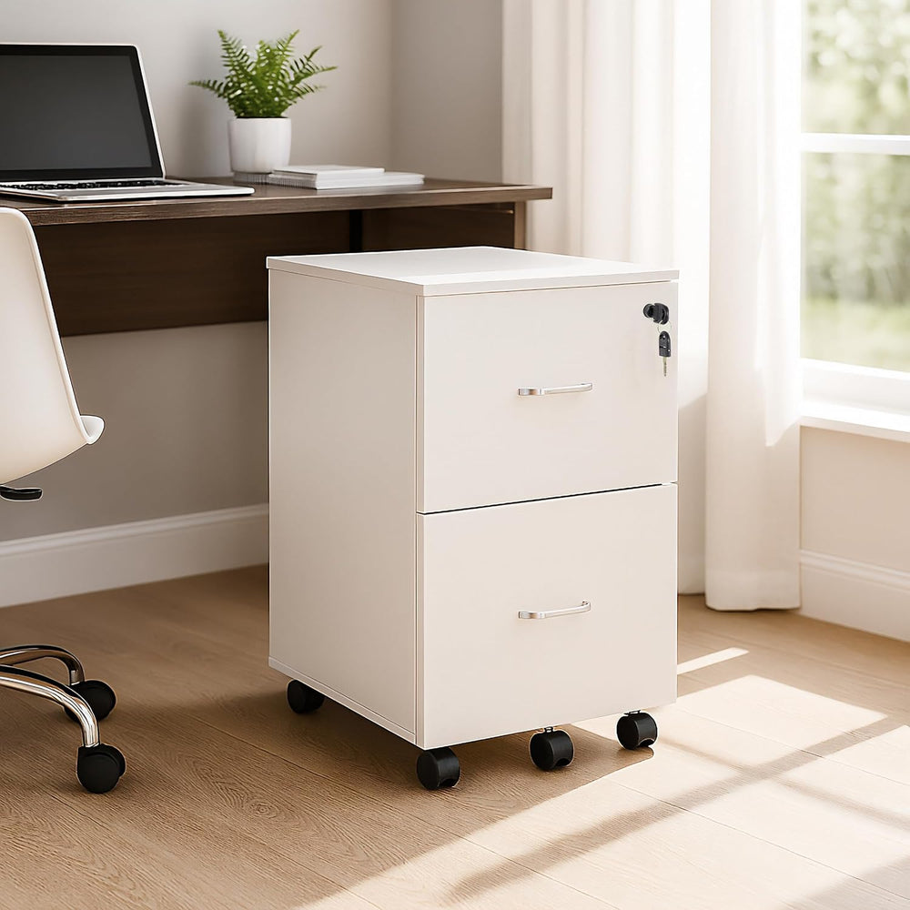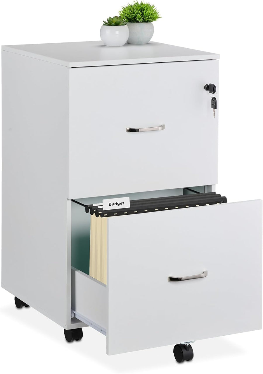 Relaxdays Rollcontainer, 2 Schubladen mit Hängeregister, HxBxT: 72 x 43 x 46 cm, abschliessbarer Akt