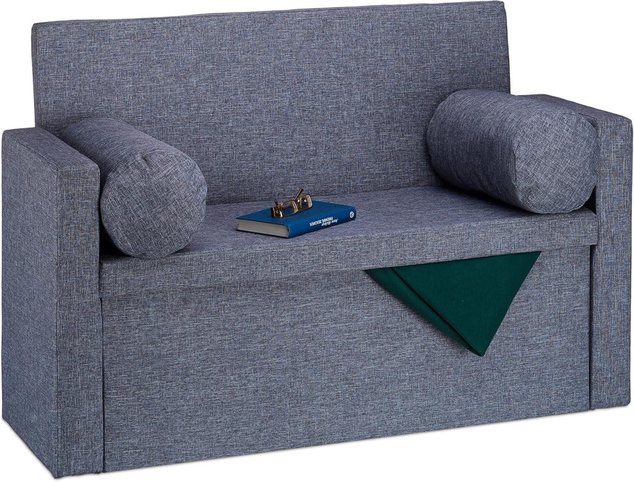 Relaxdays Sitzbank mit Lehne, 2 Kissenrollen, faltbar, Aufbewahrung, gepolstert, Flur, Sitztruhe 47