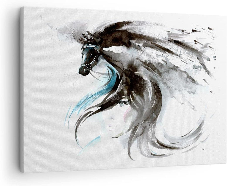 Bilder auf Leinwand Pferd Illustration modern Grafik Leinwandbild 70x50cm Wandbilder Dekoration Wohn