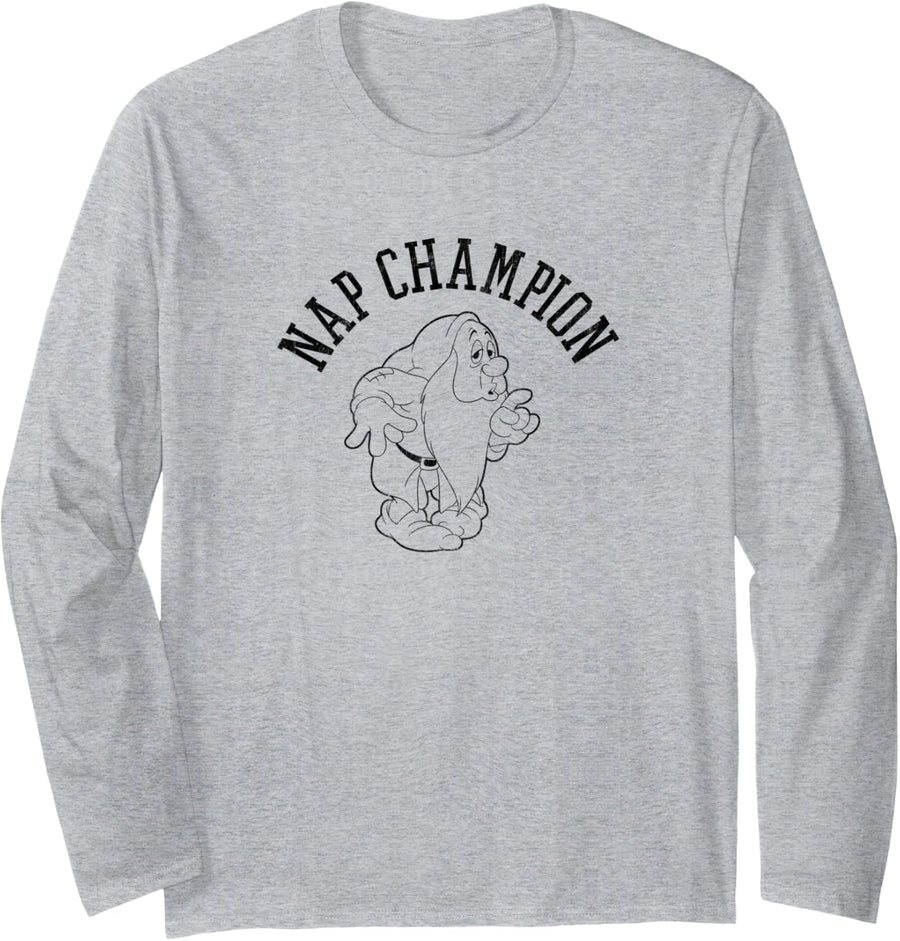 Disney Snow White Sleepy Nap Champion Simple Black Outline Langarmshirt