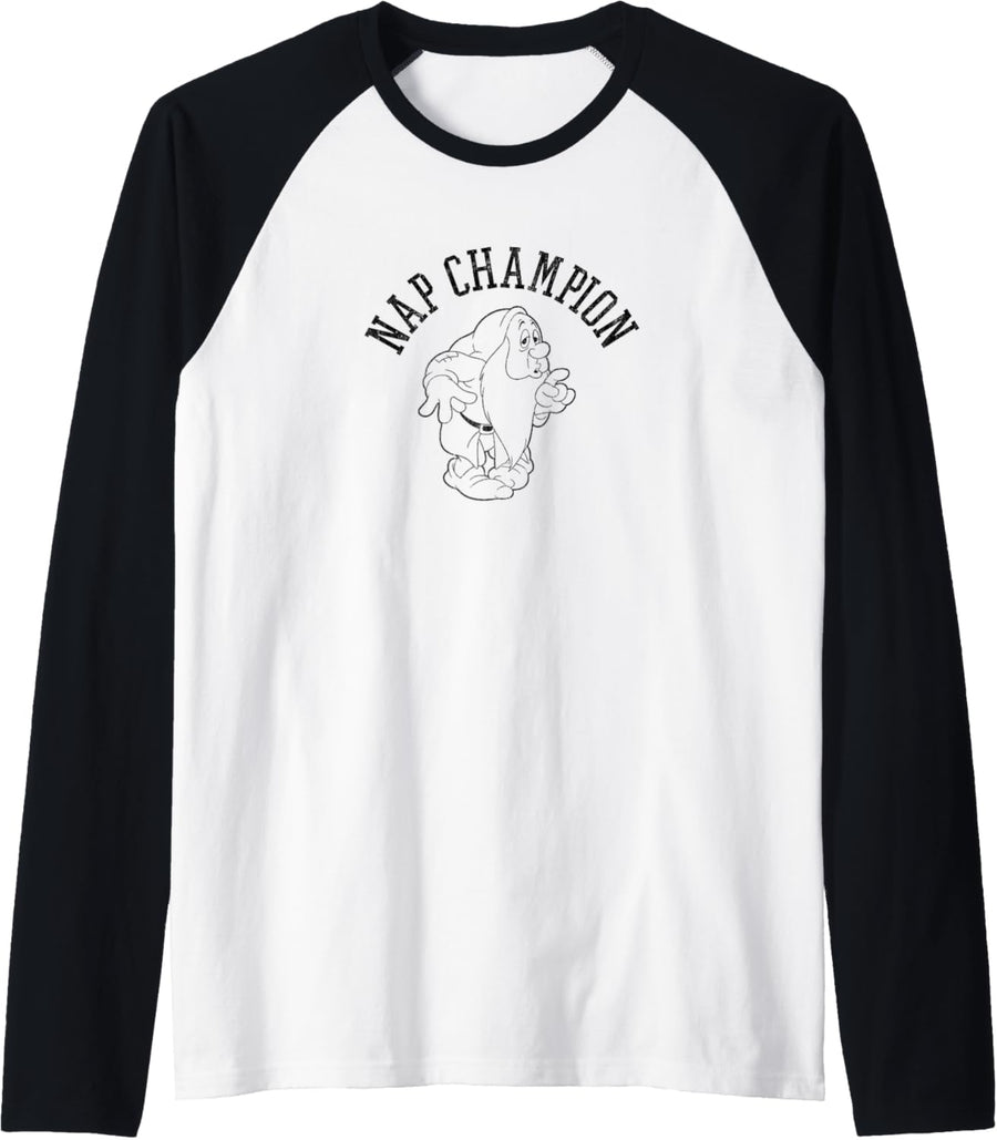 Disney Snow White Sleepy Nap Champion Simple Black Outline Raglan