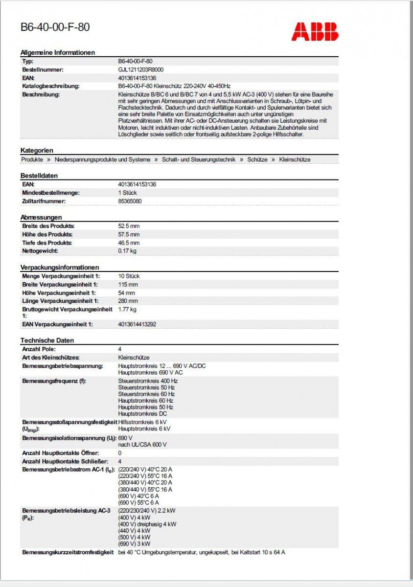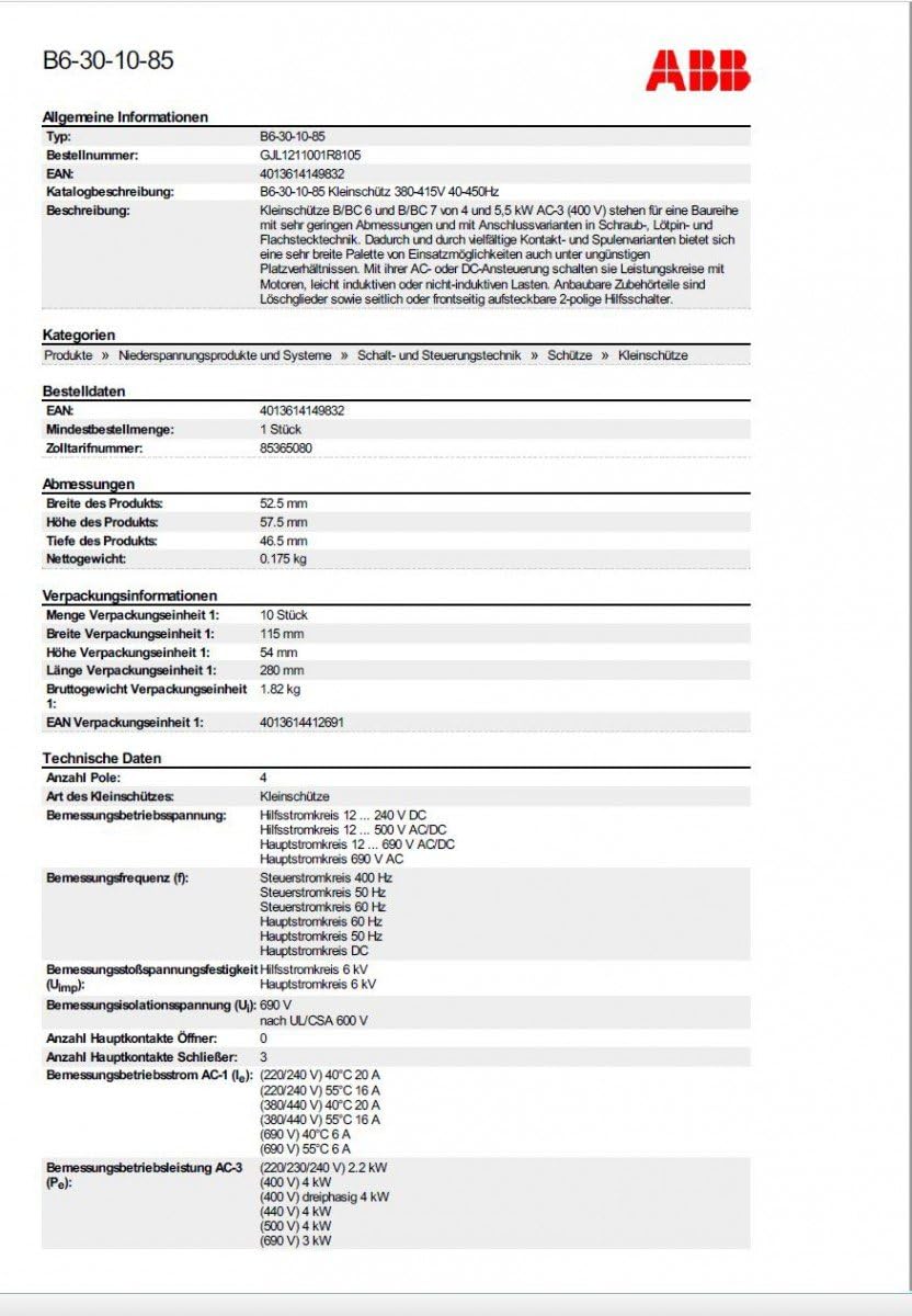 abb-entrelec B6 – minicontactor -3010p 220/240 V 40/450Hz Schweissen/ADO