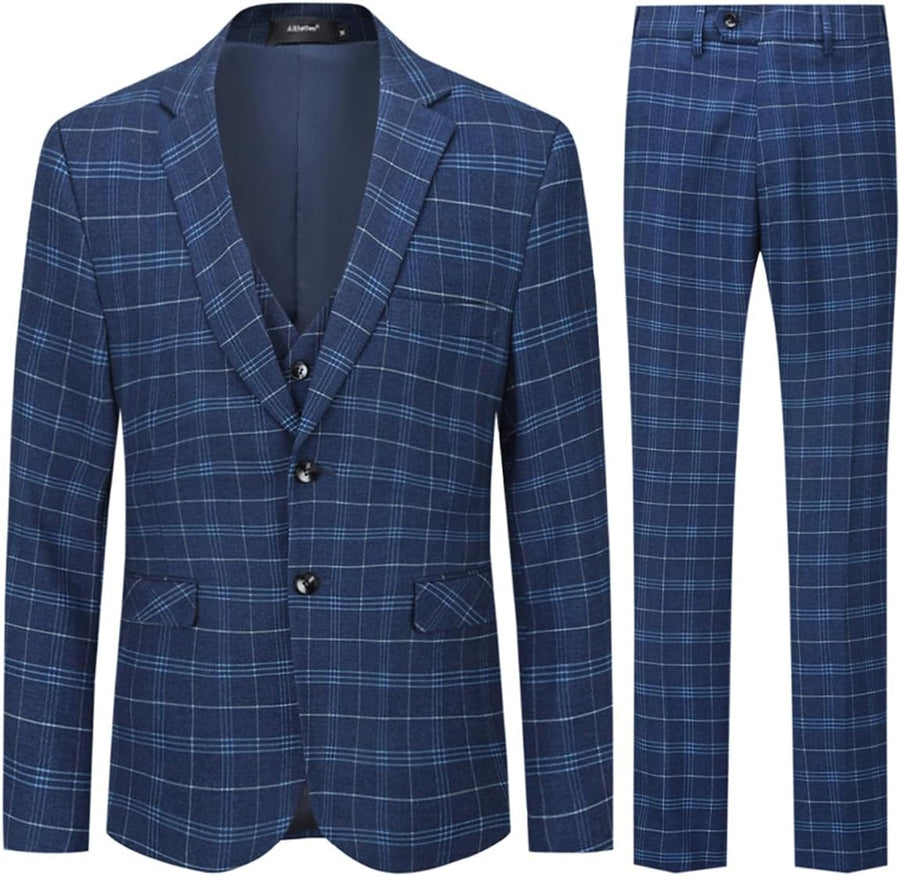 Allthemen Herrenanzug Anzug Herren Anzug Kariert Slim Fit 3 Teilig Anzüge Sakko für Business Hochzei