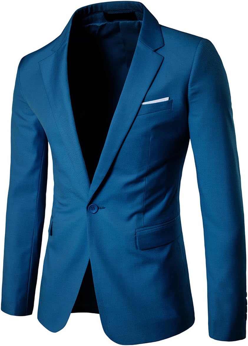 Allthemen Sakko Herren Slim Fit Anzugjacke EIN Knopf Sakko für Business M Blau, M Blau