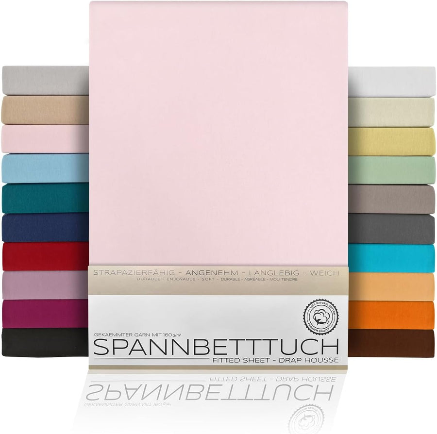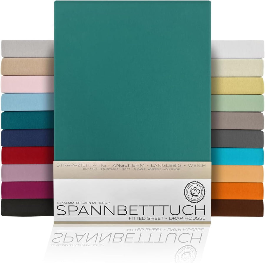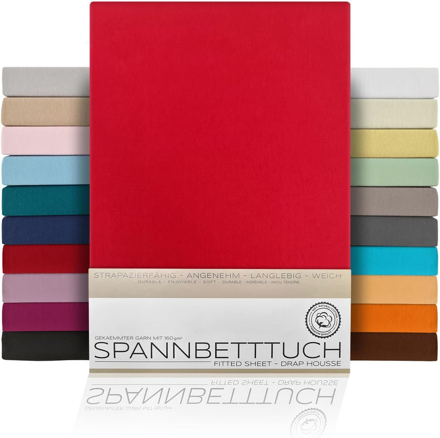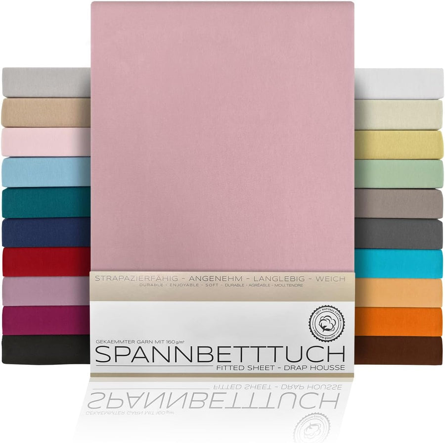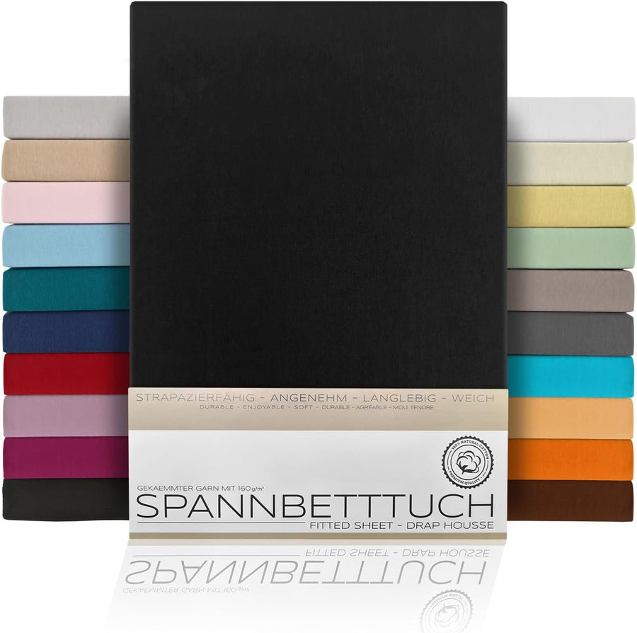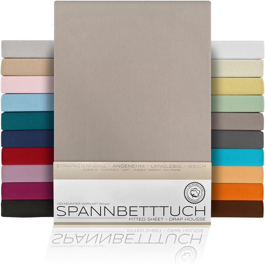 BEAUTEX Spannbetttuch Bettlaken aus Baumwolle, Premium Jersey Stoff 160g/m², Grösse und Farbe wählba