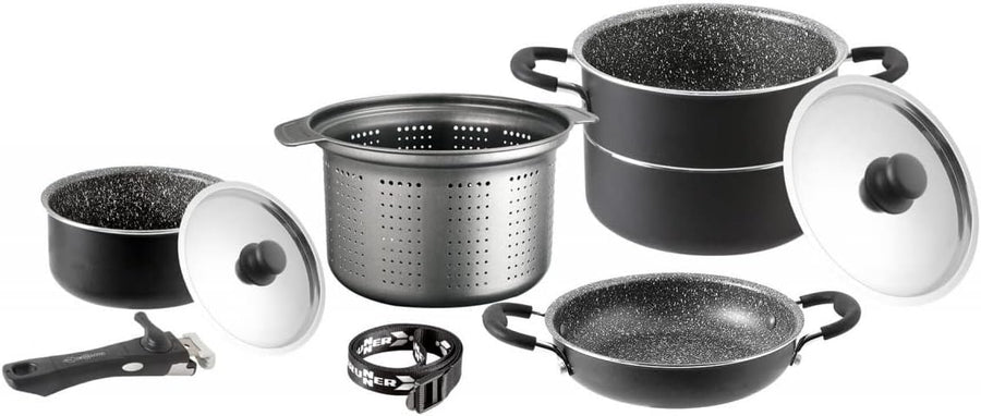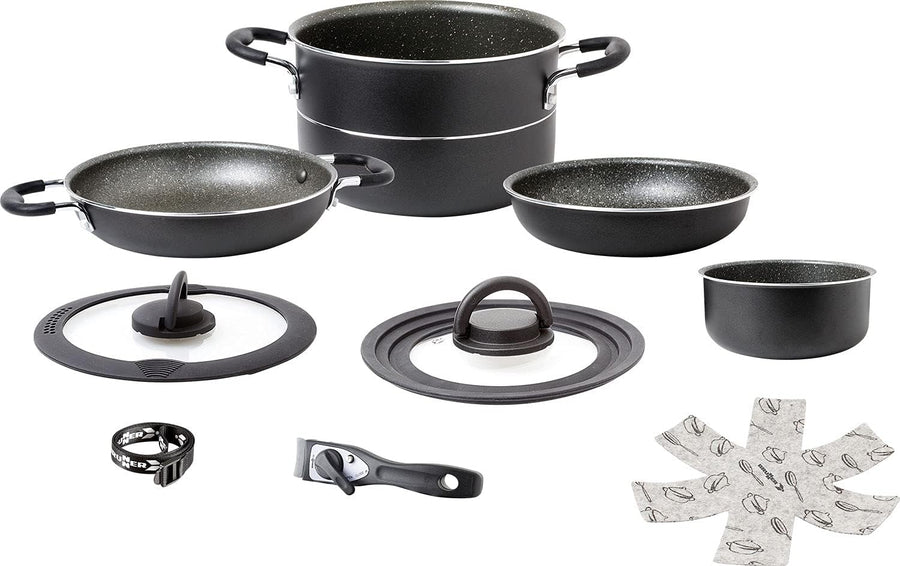 BRUNNER Unisex – Erwachsene Camping Zubehör Alu-Topfset Pirate Vacublock 9-TLG, Multicolor, Einheits