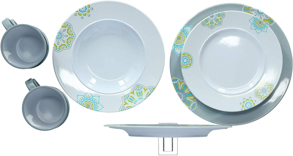 BRUNNER Melamin ESS Geschirr Set Lunch Box 16-teilig Camping Reise Teller Becher Venetian, Venetian