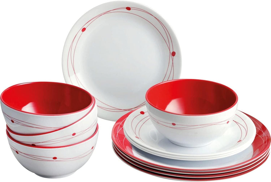 BRUNNER Melamin-Set, kosmisch, 16 Stück Rutschfest Weiss/Rot, Weiss/Rot