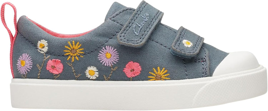 Clarks Mädchen City Bright T Sneaker Niedrig 21 EU Blue Floral Txt, 21 EU Blue Floral Txt