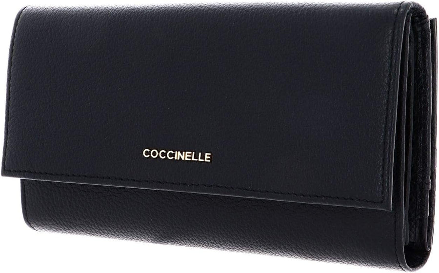 Coccinelle Metallic Soft Wallet Grained Leather Noir