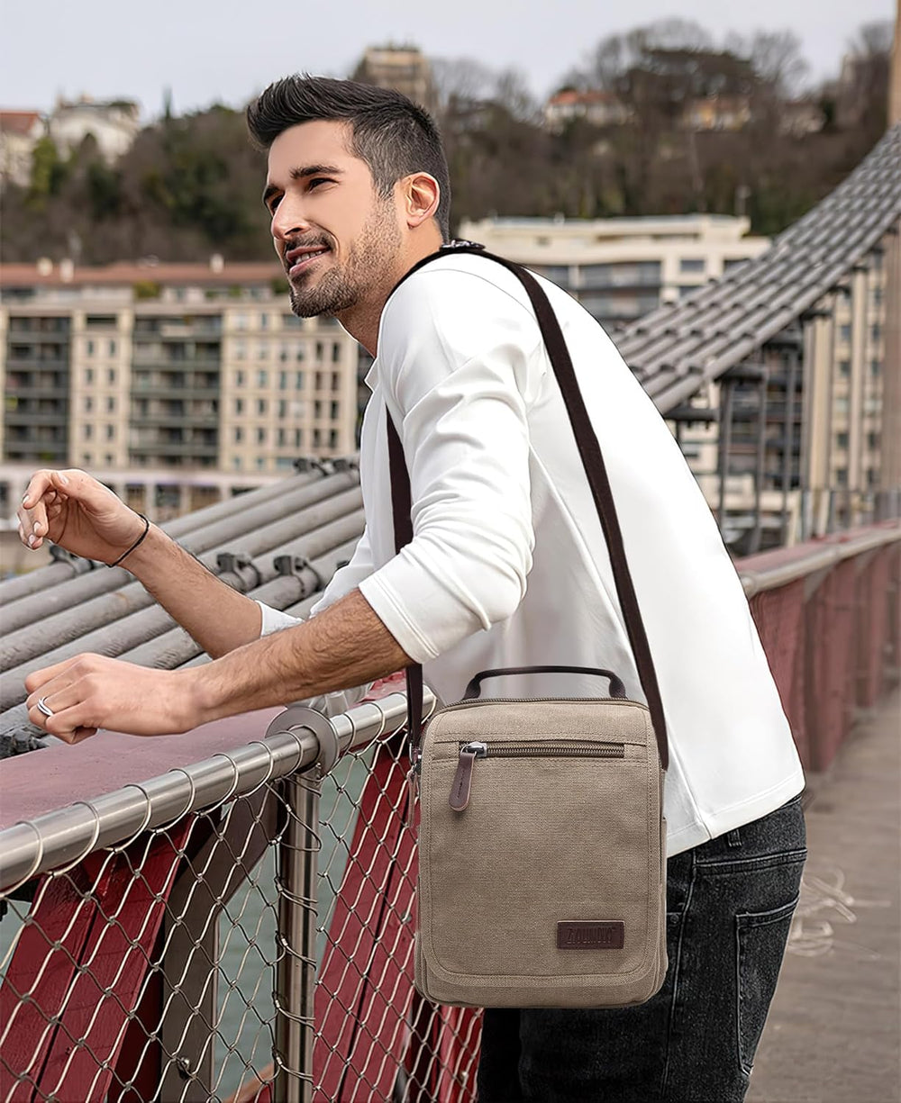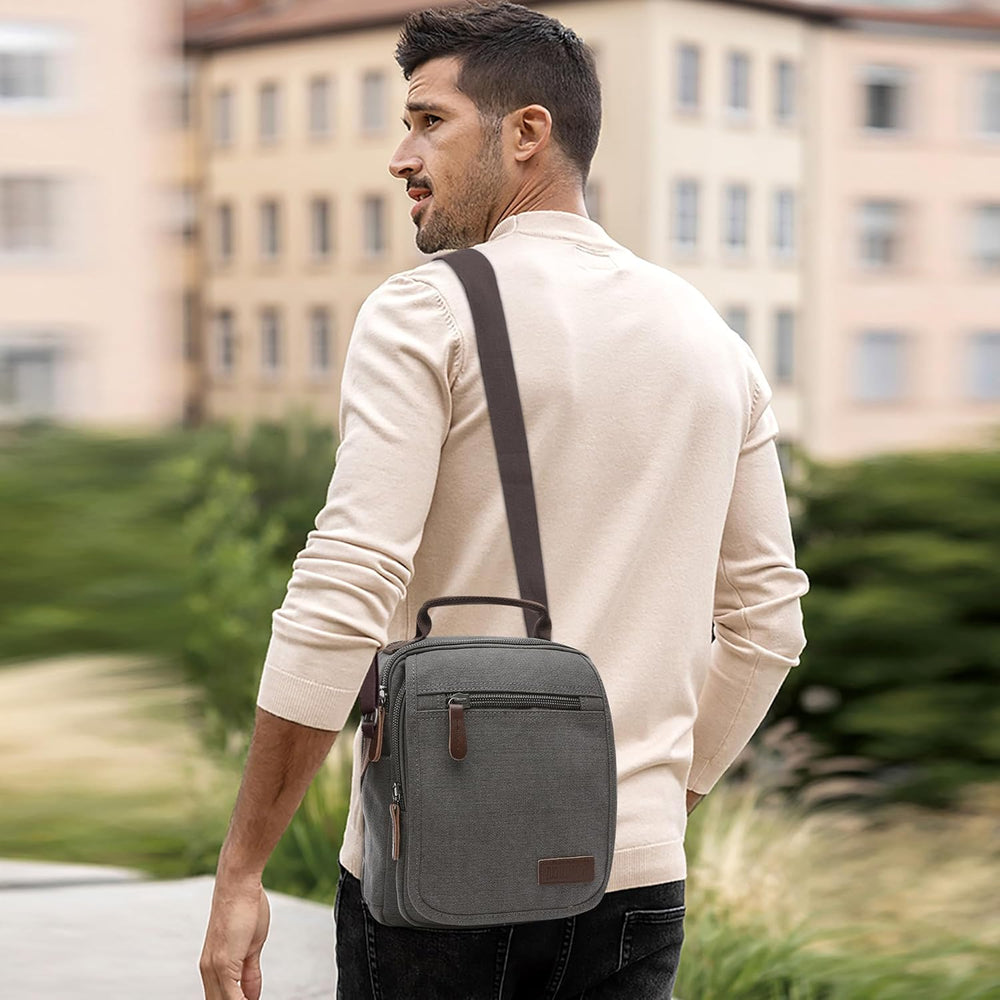 DORRISO Vintage Herren Umhängetasche Lässig Schultertaschen für 10.9 Zoll iPad mit Griff Mehrere Tas